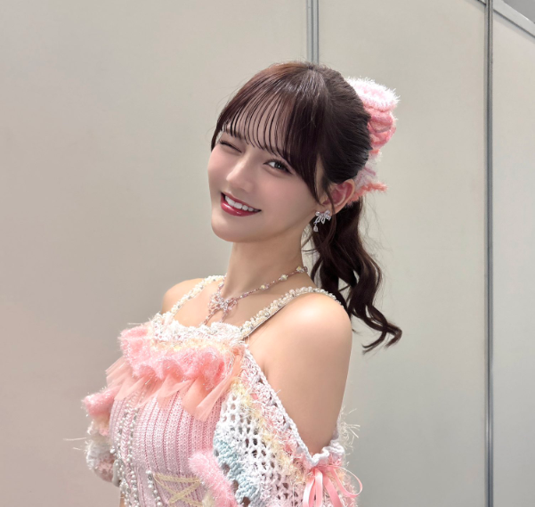 前髪が加わることで、顔の縦ラインが分断され、全体的に柔らかく、アイドルらしい雰囲気が強調されています。